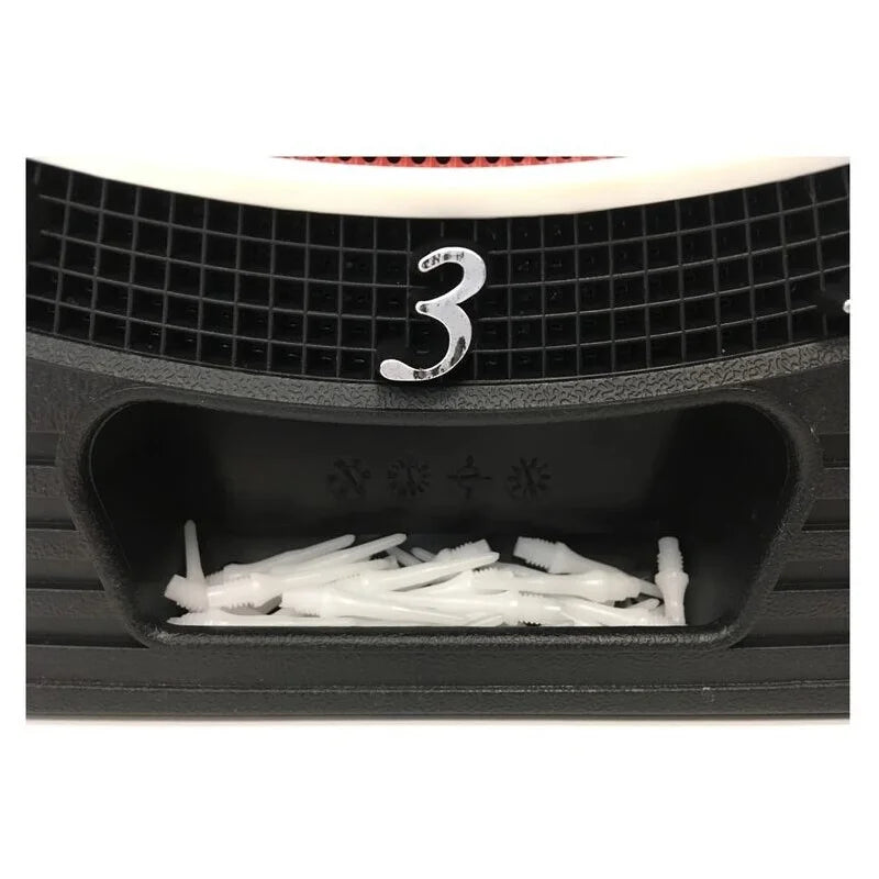 - Automatische Ausschaltfunktion: Das Dartspiel schaltet sich automatisch nach 3 Minuten in den Energiesparmodus, wenn das Gerät nicht gespielt wird. Alle Spielergebnisse bleiben solange gespeichert, bis das Spiel durch betätigen einer beliebigen Taste weitergeführt wird.